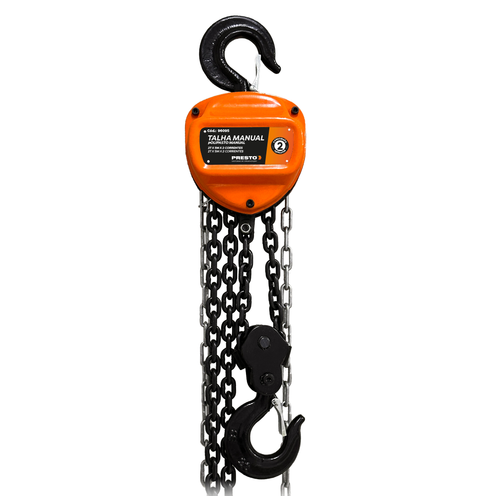 Talha Manual de Corrente 2 Ton / Elevação 5 m (2 Quedas de Corrente) – Presto